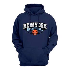Blusa Moletom Canguru Com Capuz Ajustavel Estampa New York Basketball Estiloso Academia Dia a Dia - GG - Azul Marinho