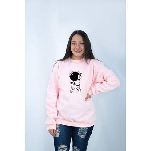 Blusa Moletom Gola Redonda Feminino Astronauta DBL - Rosa - GG