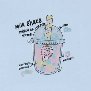 Toda estilosinha e pronta para ir tomar um milk shake com a mamãe! Confeccionada em tecido meia malha na cor nuvem, a blusinha possuí estampa de milk shake com escrita "Milk shake mágico de morango". A peça conta com gola mais arredondada e manguinhas curtas, tudo para sua pequena sentir-se confortável nos dias de calor.