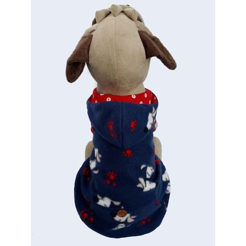 Blusa Pet azul cachorrinhos com capuz dupla face tam P