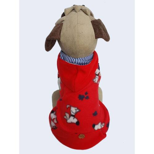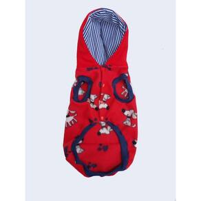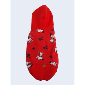 Blusa Pet vermelha cachorrinhos com capuz dupla face tam. P Roupa Pet, soft felpado sem mangas, para uso de cachorros e gatos, tamanho P Medidas: Pescoço: 30 cm; Torax: 36 cm; Comprimento: 31 cm;