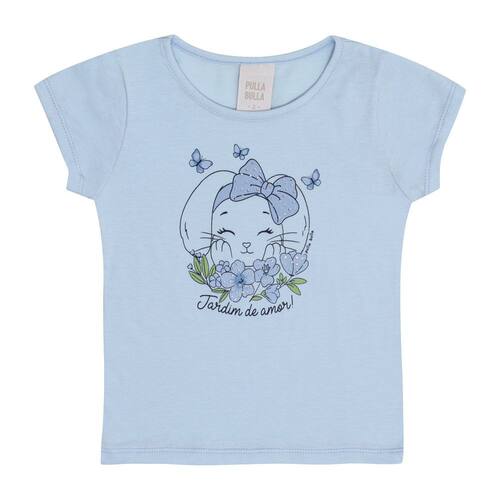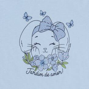 Blusinha ideal para os passeios mais divertidos da estação! Confeccionada em tecido meia malha a blusinha possuí estampa frontal de coelhinha na cor hortênsia com flores e escrita "Jardim do amor", ótimo para combinar com short, saia ou legging e aproveitar o dia com a priminha.