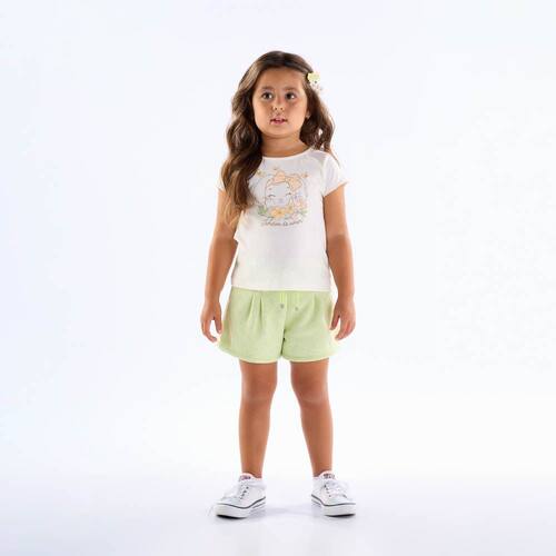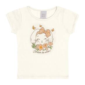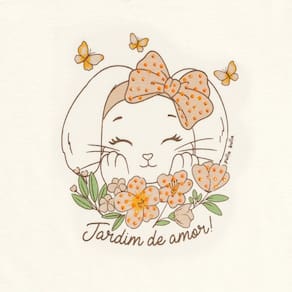 Blusinha ideal para os passeios mais divertidos da estação! Confeccionada em tecido meia malha a blusinha possuí estampa frontal de coelhinha na cor off white com flores e escrita "Jardim do amor", ótimo para combinar com short, saia ou legging e aproveitar o dia com a priminha.