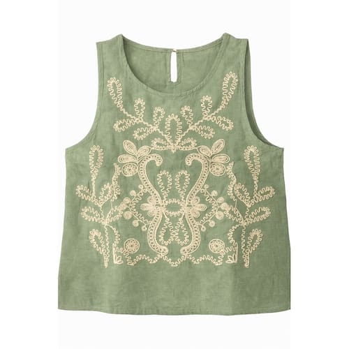 Delicada e elegante, a Blusa Regata Bordado Ren é perfeita para compor looks leves e sofisticados. Confeccionada em viscose com linho, possui toque macio, caimento fluido e aspecto natural, ideal para os dias mais quentes. O destaque da peça fica por conta do bordado, que adiciona charme e um acabamento refinado ao visual. Com modelagem confortável e versátil, a regata pode ser usada tanto em produções casuais quanto em combinações mais elegantes, ficando perfeita com saias, calças de alfaiataria, jeans ou shorts. Uma peça atemporal, fácil de combinar e indispensável no guarda-roupa feminino.