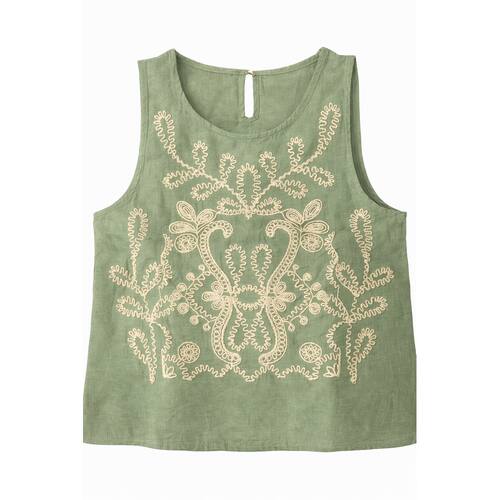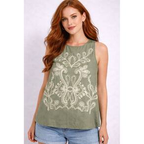Blusa Regata Feminina Bordada com Decote Redondo - G - Verde Claro