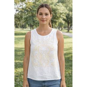Delicada e elegante, a Blusa Regata Bordado Ren é perfeita para compor looks leves e sofisticados. Confeccionada em viscose com linho, possui toque macio, caimento fluido e aspecto natural, ideal para os dias mais quentes. O destaque da peça fica por conta do bordado, que adiciona charme e um acabamento refinado ao visual. Com modelagem confortável e versátil, a regata pode ser usada tanto em produções casuais quanto em combinações mais elegantes, ficando perfeita com saias, calças de alfaiataria, jeans ou shorts. Uma peça atemporal, fácil de combinar e indispensável no guarda-roupa feminino.