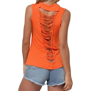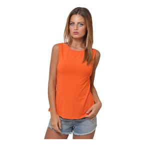 Blusa Camiseta Feminina Laranja Detalhe Nas Costas em Viscolycra