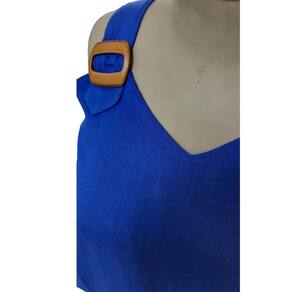 Descrição: Possui boa respirabilidade, semelhante aos tecidos de algodão. É de fácil tingimento e aceita cores vivas, tem ótimo custo x benefício. Secagem rápida. Não amassa com facilidade, com o design na gola em V, e na alça regata com um detalhe, look para o dia-a dia e casual