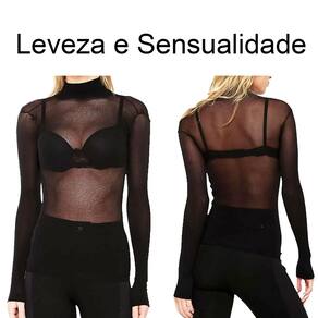 Blusa Segunda Pele Gola Alta Manga Longa Fio 40 Tamanho Único 38-44 Produto em tamanho único que atende numeração: 38 a 44. Cor disponível: Preto. Confeccionada com malha finíssima para ser usada em baixo da roupa ou com sobreposições, permitindo versatilidade no visual. Modelagem em manga longa, possui transparência, elasticidade e caimento justo. Qualidade Selene. Modelo: Gola alta Fio 40. Composição: 98% Poliamida, 2% Elastano. Lavagem à mão. Produto delicado. Contém: 1 unidade na cor preta. Fotos ilustrativas e reais do produto.