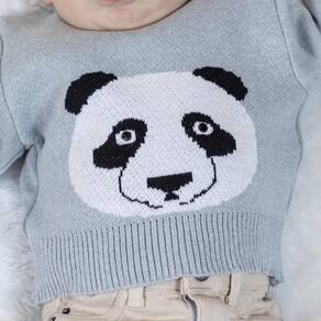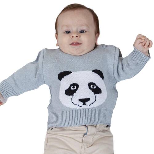 BLUSA TRICÔ KIDS DE BEBÊ COM PANDA DE TRICÔ