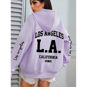 Blusão Moletom Feminino Los Angeles ElaShopp - Roxo - G3