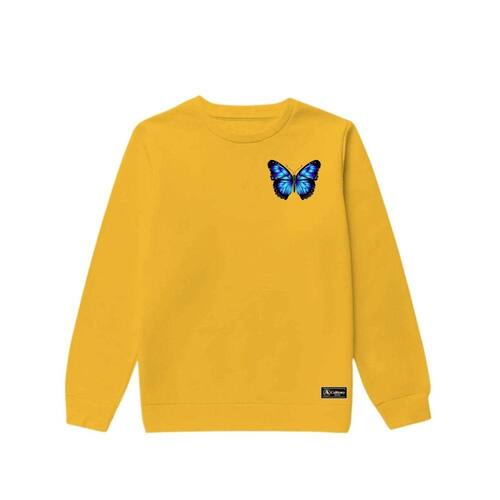 Blusão Moletom Infantil Borboleta Personalizado sem Capuz gola Redonda - Amarelo - 6
