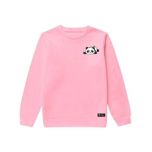 Blusão Moletom Infantil Panda Personalizado sem Capuz gola Redonda - Rosa - 12