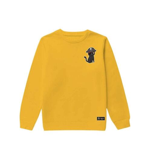 Blusão Moletom Infantil Pirata Gato Personalizado sem Capuz gola Redonda - Amarelo - 12