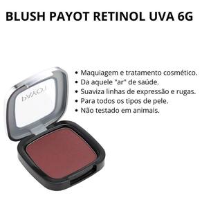 O Blush Retinol é maquiagem e tratamento cosmético em um só produto. Com a presença do ativo retinol vegetal, auxilia na suavização de linhas de expressão e rugas, proporcionando um efeito de pele saudável e suave.Com pigmentos micronizados e textura ultrafina que esfuma facilmente, possui boa fixação e proporciona pigmentação na medida certa desde a primeira aplicação. Para todos os tipos de pele. Retinol Vegetal - extrato obtido da planta Bidens pilosa. Atua de forma semelhante aos retinóis sintéticos.