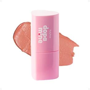 Aplique o Blush Stick Ruby Rose Dopamine diretamente sobre as maçãs do rosto.
