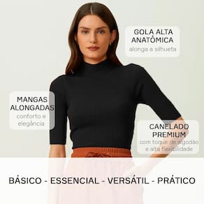 A blusa cacharrel com gola alta e manga média alongada é uma peça que combina estilo e conforto com muita elegância. Suas mangas médias são alongadas na região do antebraço, com uma modelagem atemporal e moderna.