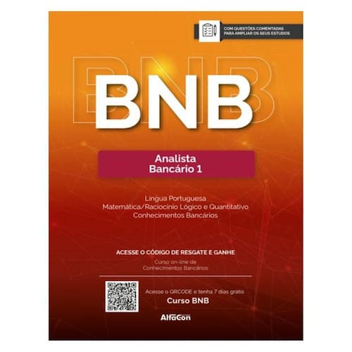 A OBRA A chance de fazer parte do Serviço Público chegou, e a oportunidade está no concurso para BNB - Analista Bancário 1 do Banco do Nordeste do Brasil - 2ª Edição. Para ingressar nesta carreira, é fundamental que a preparação para a prova seja feita de forma eficaz - com os materiais certos. Isto é, neste universo dos concursos públicos, estar bem-preparado faz toda a diferença. Por isso, a Editora AlfaCon, sempre atenta e preocupada com nossos concurseiros, apresenta esta obra diferente e perfeita para você. Nesse sentido, no decorrer dos assuntos, o estudante encontrará dicas para a sua compreensão. Toda essa disposição foi pensada para auxiliar o concurseiro, a obter sucesso na carreira que almeja. CONTEÚDOS CONTEMPLADOS • Língua Portuguesa • Matemática - Raciocínio Lógico e Quantitativo • Conhecimentos Bancários ON-LINE ? Conhecimentos Bancários O AlfaCon preparou todo o material com explicações, reunindo os principais conteúdos relacionados a prova, dando ênfase aos tópicos mais cobrados. ESTEJA ATENTO AO CONTEÚDO ONLINE POR MEIO DO CÓDIGO DE RESGATE, para que você tenha acesso a mais conteúdo. Desfrute de seu material o máximo possível, estamos juntos nessa conquista!