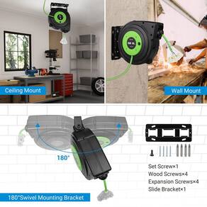 Carretel de cabo de extensão DEWENWILS - ? Retrátil Automático ? Com um mecanismo inteligente de rebobinamento de guia automático para evitar dobras e emaranhados, o carretel do cabo de alimentação se retrai de forma rápida e suave; o sistema de catraca travará o cabo em qualquer comprimento; o carretel do cabo também vem com uma rolha ajustável - ?Suporte giratório para montagem na parede/teto? O suporte de montagem giratório de 180 graus permite que você puxe e solte facilmente o cabo de várias direções; o carretel de cabo retrátil pode ser montado na parede ou teto facilmente com um suporte separado - ? Cabo de calibre 14 AWG/3C de 15 pés? Classificação para 13 A/125 V/1625 W, a estação de alimentação de carretel de cabo elétrico resistente tem uma capacidade de saída tripla com uma luz indicadora, conveniente para áreas difíceis de ver; cabo de extensão de 15 m e cabo de 1,4 m de entrada - ? Cabo SJTOW resistente a óleo e água ? O tipo especial de PVC (SJTOW) é livre de emaranhados e resistente à luz UV, ozônio, água, óleo e ácido que você pode encontrar em uma garagem típica; também resistente ao clima e mantém flexível em baixas temperaturas; apenas para uso interno ou seco - ?Disjuntor de 13 A embutido? O disjuntor integrado de 13 A protege os dispositivos contra curto-circuito e sobrecargas, que cortam automaticamente a fonte de alimentação quando a corrente total dos dispositivos conectados exceder 13 A; pressione o botão de reinicialização para continuar usando após o corte; certificado pela UL