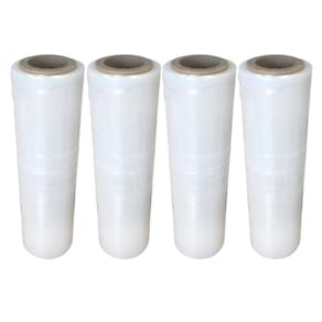 Kit 4 bobina filme película pe stretch manual transparente 500 x 0,025 cada bobina pesando 3,900 a 4,100 kilograma com tubo papelão