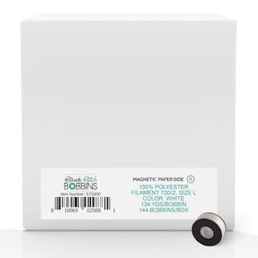 As bobinas Steady Stitch Magnetic Paper Sides fornecem um fluxo estável e uniforme de fio de poliéster de filamento contínuo de alta qualidade, que permite costurar até a última polegada da linha. Esta bobina tem um fino revestimento magnético nas laterais do papel para fornecer alimentação suave e consistente. Bobinas pré-enroladas com fio de poliéster Style 70D/2. - ALTA QUALIDADE - Fornece um fluxo estável e uniforme de fio de poliéster de filamento contínuo de alta qualidade - ESTILO - Bobina estilo L - FILAMENTO - 70D/2. Tamanho L - QUANTAS - Você obtém 144 bobinas por caixa, 134 jardas por bobina