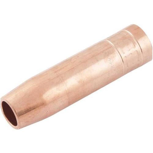 Bocal único cônico com rosca, ponteira única para tochas de solda mig/mag, produzidas a partir de material de cobre de alta resistência, com paredes grossas para minimizar o desgaste prematuro.