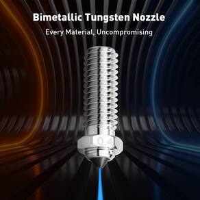 - O carboneto de tungstênio é 3 vezes mais condutor térmico do que o rubi e tem excelente desempenho na impressão de filamentos altamente abrasivos, como materiais preenchidos com fibra de carbono/vidro, preenchidos com metal e materiais que brilham no escuro.