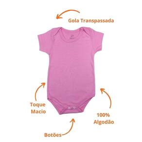 Body Bebê Manga Curta Algodão Rosa Escuro Liso Menina - G - Rosa