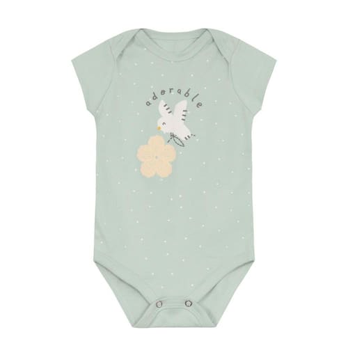 Encante-se com o body bebê menina da Brandili, confeccionado em cotton macio e confortável. Este body possui uma adorável estampa em puff de florzinha e passarinho, complementada por uma delicada escrita. Com gola redonda e mangas curtas transpassadas, oferece um toque de charme ao visual da sua pequena. O fechamento entre as pernas por botões de pressão facilita na hora de trocar. Combine com um shortinho ou saia e deixe sua bebê ainda mais linda e estilosa! Ideal para o dia a dia e momentos especiais!