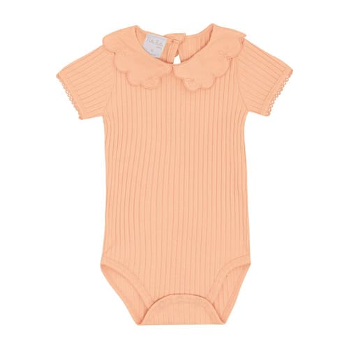 Body manga curta confeccionado em malha canelada na cor pessego, a malha tendência para as meninas também chegou para as babys fashionistas com detalhe de babado na gola, possuí abertura de botões entre as pernas e para facilitar a vestimenta também possuí abertura nas costas com botão. Sua fashionista vai encantar a todos no dia a dia!