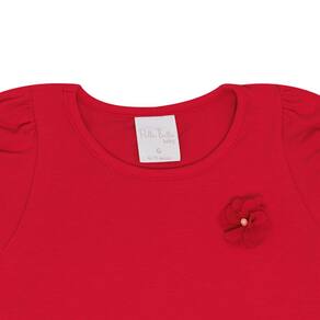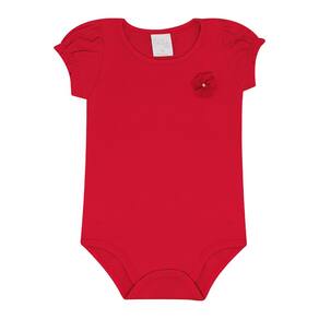 Body manga curta confeccionado em cotton leve na cor vermelho, a fofura da peça deixamos para seu aplique de flor localizado ao lado esquerdo na parte da frente da peça, com mangas que possuem elastano na barra e abertura entre as pernas com botões facilitando a troca da peça em qualquer ocasião.