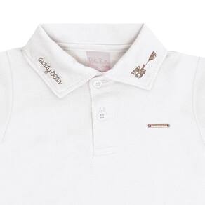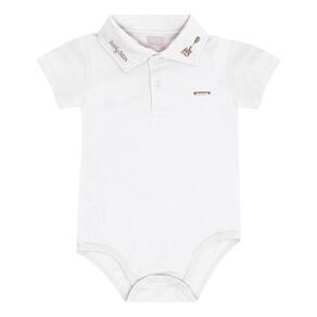Body branco essencial e indispensável para os babys! Com a gola polo e piquet com elastano nas mangas, seu pequeno cavalheiro irá encantar todos por onde for. Possuí bordados na gola e placa de metal com idenfiticação Pulla Bulla próximo ao peito.
