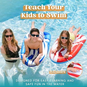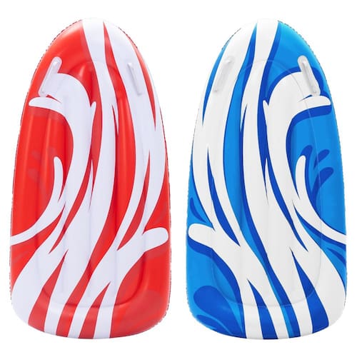 - SUPERVALOR. Nosso flutuador de piscina inflável vem em 2 peças de pranchas nas cores azul e vermelho para crianças que aprendem na piscina e brincam na água. Perfeito para festas de verão na piscina e na praia.