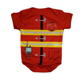 Body de Bebê Manga Curta Estampa Bombeiro. Tecido frente: malha 96% poliéster, 04% elastano. Tecido costas e mangas: malha 100% algodão. Toque macio e confortável. Estampa sublimada de alta qualidade. Gola envelope, facilita na hora de vestir o bebê. Fechamento por botões de pressão. Tamanhos: P ao GG. Consulte a tabela de medidas nas fotos.