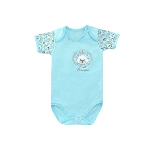Nosso Body Infantil Menino Urso Coroa Azul Claro - Bebê Brincalhão de suedine deixará seu príncipe ainda mais lindo! Possui estampa super fofa de elefantinho na parte da frente e nas mangas. Conta também com botões de pressão entre pernas que facilitam na hora da troca.