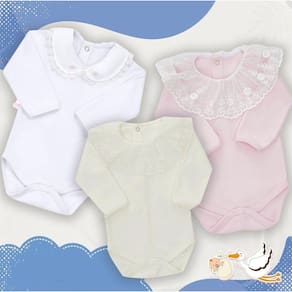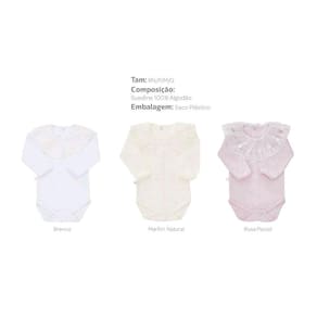 O Body para Saída Maternidade Renda na gola, é uma peça muito delicada e sofisticada, com botões entre as perninhas, facilitando a troca do bebê.