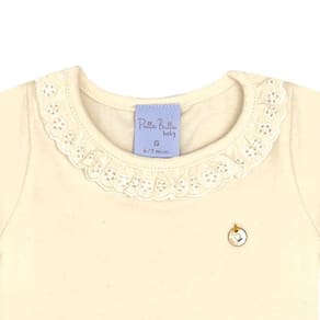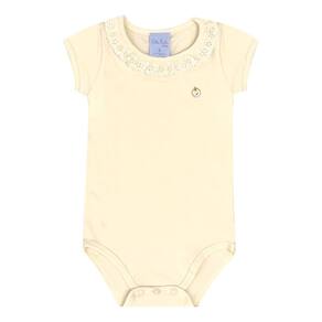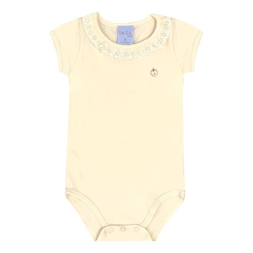 O body bebê fofurinha é um verdadeiro mimo! Confeccionado em cotton leve na cor natural, a peça conta com detalhes de renda na gola e uma placa de metal redonda com o símbolo da Pulla Bulla. Além do abotoamento entre as pernas, que facilita a troca para as mamães, confortável e macio, o body é fresquinho e ideal para o dia a dia das pequenas.