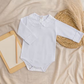 Body Branco Infantil Bebê Manga Longa Punho e Gola Bordada referencia BB79. Perfeito para combinar com as saídas de maternidade! Eles completam os primeiros looks dos bebês, garantindo a eternização desse momento tão importante com muito estilo e conforto. O body com gola é confeccionado em 100% algodão. Possui abertura entre as pernas e na parte de trás da gola para facilitar a passagem da cabeça do bebê sem machucar. Os tecidos de extrema qualidade e acabamentos impecáveis fazem com que o body não precise ser utilizados exclusivamente por baixo do macacão, mas também como uma roupinha super confortável e elegante. Uma peça que proporciona extremo conforto pois mantém a fralda no lugar e protege a barriguinha do bebê.Ele possui Maciez ao toque, garantindo o conforto. Mantém a temperatura do bebê sem super aquecer por isso é indicado para todas as estações do ano.
