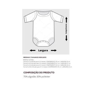 - Body com gola pólo e botões de pressão na parte inferior, para facilitar a troca de fralda do bebê.