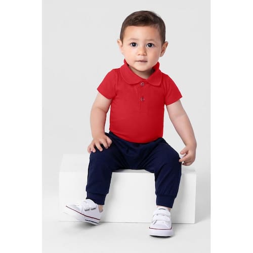 Body polo bebê menino em meia malha Brandili-Vermelho - P - Vermelho
