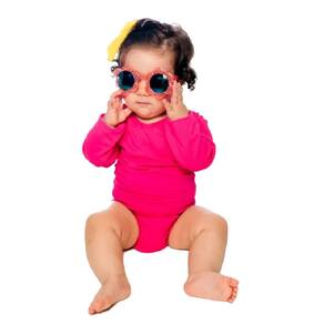 O Body de Praia Bebê Everly possui Proteção Solar FPU 50+ e mangas longas para maior proteção. A abertura entre as pernas e a gola facilitam a troca e o vestir.