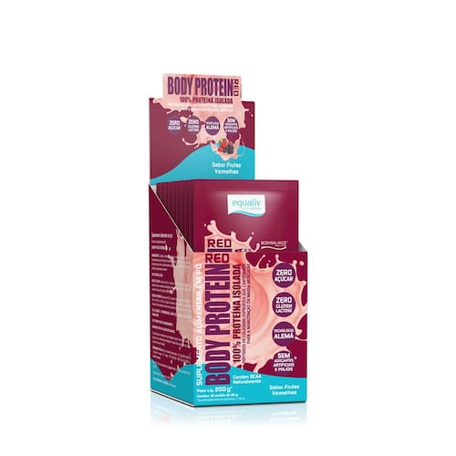 Equaliv Body Protein Red é um produto da família Body Protein, agora com um delicioso sabor frutas vermelhas. Equaliv Body Protein Red é uma proteína isolada com tecnologia, a base de peptídeos de colágeno específico para os músculos. Body Protein não é proveniente do soro do leite, sendo assim, pode ser consumido tranquilamente por todos aqueles intolerantes à lactose. Outro diferencial é a presença de aminoácidos de cadeia ramificada (BCAA), a leucina, isoleucina e valina, os quais correspondem a cerca de 35% dos aminoácidos essenciais em proteínas musculares. Estudo mostra que 15g/dia + 3h de exercícios físicos por semana resultam em 50% de aumento na efetividade do treino, se comparado às pessoas que não ingeriram fonte de proteína.