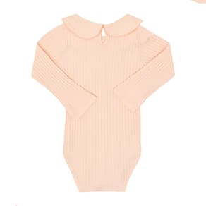 Body manga longa com babados aplicados de flores na gola, charmoso e quentinho para deixar sua pequena fashionista ainda mais charmosa. Confeccionado na cor rosa pó, possuí abertura entre as pernas com botõe de pressão para facilitar as trocas e o dia a dia das mamães.\n