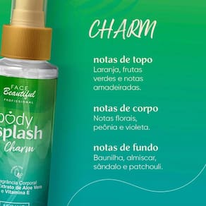 O body splash charm face beautiful é aquele toque especial que não pode faltar na sua rotina. Com uma fragrância envolvente, leve e feminina, ele traz a mistura perfeita entre frescor e elegância ideal para quem ama se sentir perfumada o dia todo, sem pesar. Notas delicadas e cativantes que transmitem charme e sofisticação desde a primeira borrifada.