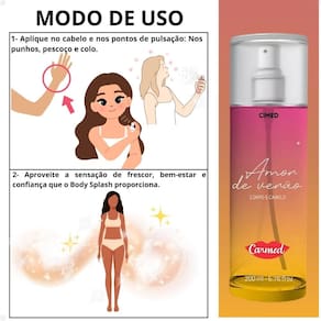 1. Borrife o Body Splash Carmed Amor de Verão diretamente sobre a pele.
