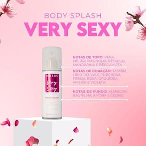 Body Splash Very Sexy Desodorante Colônia, uma fragrância sedutora e sofisticada com notas de pêra, jasmim e baunilha, perfeita para criar uma aura irresistível de sensualidade e charme.