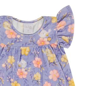 Para uma passeio no parque ou para um momento especial! Com o body vestido todas as possíbilidades são viáveis para os dias mais fresquinhos. Confeccionado em tecido cotton leve na cor lavanda com estampa de flores coloridas que são a cara da estação. Possuí abertura de botões entre as pernas facilitando troca para as mamães.