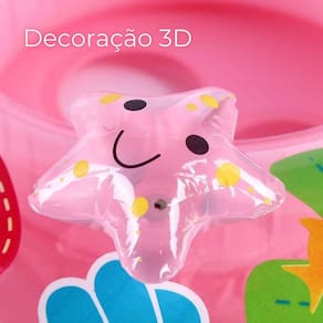 Conta com encaixe(fralda) de perna bem macio, dando estabilidade a criança e tornando a brincadeira mais divertida.