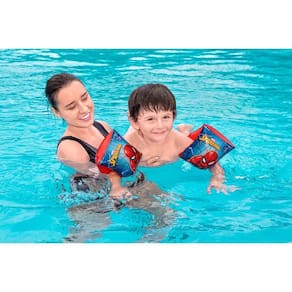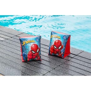 Brincadeiras na água com muita segurança. Com esta boia de braço, você ficará mais tranquilo para deixar a sua criança tomar banho de piscina. Feita em vinil, ela oferece qualidade e resistência. Possui estampa do Homem-Aranha deixando a brincadeira ainda mais interessante. Recomendado para crianças de 3 a 6 anos.