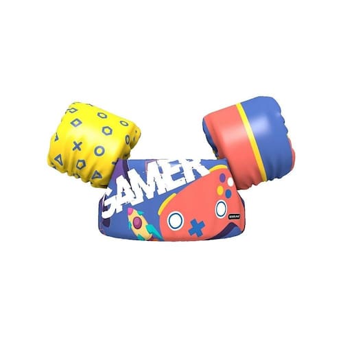 Boia Sea Float com proteção nos braços e colete, a boia pode ser ajustada apartir de uma cinta na parte de trás. Movimento dos braços e pernas livres. Não necessita enhcer e não fura, além de contar com secagem rápida. Conta com preenchimento feito de espuma de polietileno expandido, com alto poder flutuante, costurado em linha de poliéster.